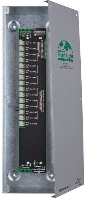 The Crestron Green Light® GLS-EM-CTI is a current transformer interface designed for use with a GLS-EM-MCU Crestron Green Light Power Meter Control Unit. The GLS-EM-CTI current transformer interface, in conjunction with the main control unit, facilitates monitoring of multiple branch circuits. This allows users to monitor the power consumption of a particular area or device. GLS-EM-CT current transformers are placed around the feed wire of each circuit, and then connected to the GLS-EM-CTI current transformer interfaces. As many as four (4) GLS-EM-CTI units can connect to a single GLS-EM-MCU power meter control unit for monitoring of up to 84 branch circuits.