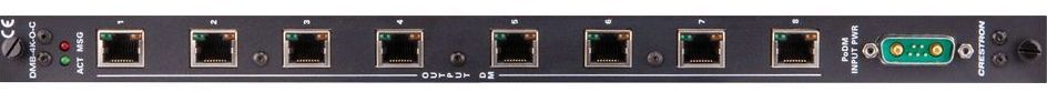The DMB-4K-O-C is an output blade designed for use with any blade-based Crestron® DigitalMedia™ Switcher. It provides eight independent DM 8G+® outputs, which are also compatible with HDBaseT®. Using a single CAT type twisted pair cable, each DM 8G+ output enables connection to a DM 8G+ receiver, the input of another DM® switcher, or an HDBaseT® certified display device or receiver.Note: Older units with Crestron Material # 6506002 support HDCP 1.2 only. A hardware replacement using Material # 6507802 is required to enable support for HDCP 2.2.