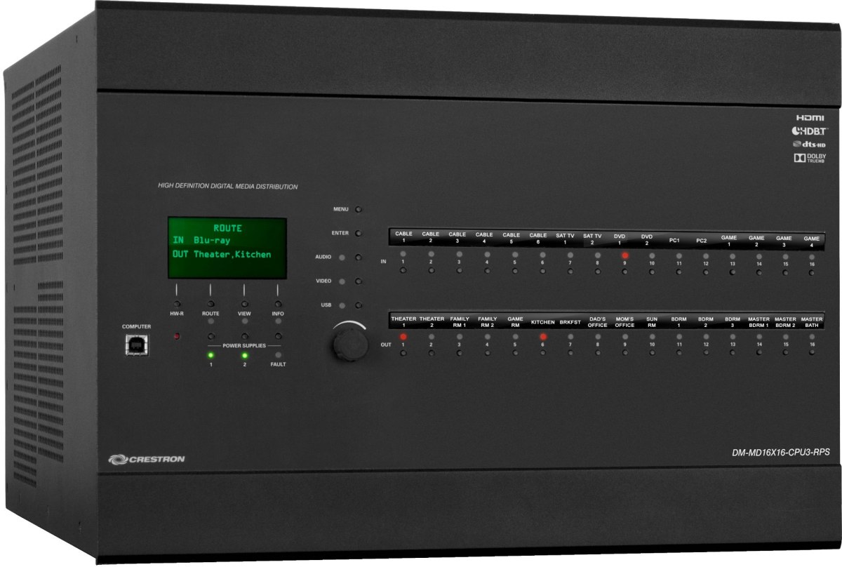 The DM-MD16X16-CPU3-RPS provides full support for Crestron DigitalMedia 8G+ devices as well as first-generation DM CAT and DM Fiber products, letting you take advantage of the latest Crestron DigitalMedia 8G+ technology.