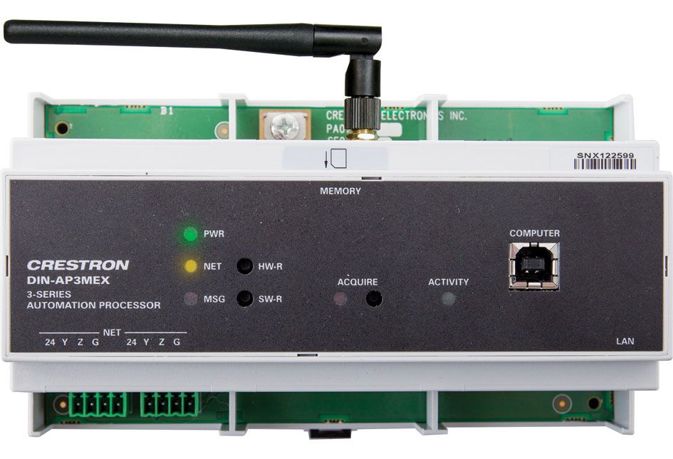 The Crestron® DIN-AP3MEX is a 3-Series Control System® designed for DIN rail mounting applications. Built-in infiNET EX® and ER wireless technology makes the DIN-AP3MEX ideal for all types of lighting, shading, AV, and climate control applications wherever a reliable wireless control solution is preferred. Wired Cresnet® and Ethernet communication is also supported. Featuring the 3-Series® control engine, the DIN-AP3MEX forms the core of any modern networked home or commercial building, managing and integrating all the disparate technologies throughout your facility to make life easier, greener, more productive, and more enjoyable.