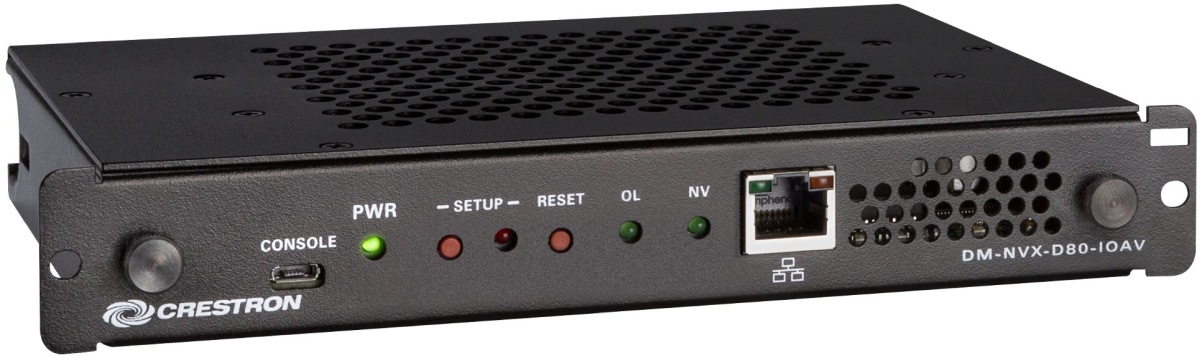 Features of the DM-NVX-D80-IOAV also include secure web-based control and management, AES transmit and receive capability, and copper Ethernet connectivity. The DM-NVX-D80-IOAV provides an affordable solution for a DM NVX network AV installation of any size.