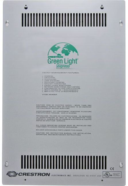 Green Light Express® 120- and 277-Volt dimming and switching panels that support feed-through wiring and eight to 56 circuits each. Two-stage installation models enable the rough-in enclosure to be ordered and installed before the lay-in panel.Visit the Crestron® Lighting Fixture Compatibility page to find out which Crestron lighting devices have been tested and are compatible with third party lighting fixtures.Crestron Green Light Express® is a low-cost collection of dimming and switching panels with a feed-through wiring configuration. These efficient lighting control panels are designed for use in office buildings, warehouses, parking garages, sports facilities, public spaces, and anywhere centralized dimming or switching is required. With a smaller form factor than the Crestron Green Light® Series, the Green Light Express Series is the economical solution for reliable lighting control. An extensive selection of Crestron keypads, touch screens, occupancy sensors, photosensors, shade controllers, and numerous other peripheral options afford astounding design flexibility with unparalleled capability for integration.The Green Light Express GLPX Series encompasses a range of switching panels that feature standard switching, heavy-duty switching, single pole relays, and double pole relays. In addition to switching, Green Light Express panels offer dimming control for a wide variety of load types including 2-wire and 3-wire fluorescent, magnetic low-voltage, neon/cold cathode, and 0-10 Volt ballasts and drivers (4-wire). Each GLPX Series panel supports eight to 56 circuits and a feed-through wiring configuration. With the addition of the control module, Crestron Green Light Express is a versatile, economical switching and dimming solution in any commercial application.