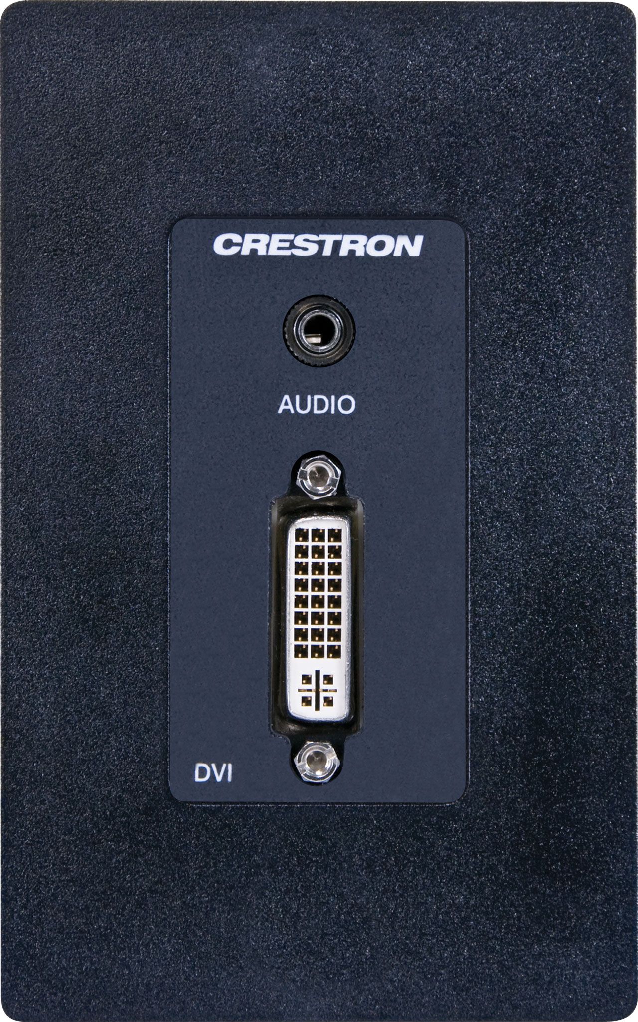 Provides a single-gang wall mount input or output for DVI digital video and analog stereo audio.Media Presentation Wall Plates complete the total Crestron® package, ensuring end-to-end Crestron quality for every installation. A range of wall plates is offered to support all types of analog and digital video, audio, and control signals.The MP-WP140 features one (1) Dual Link DVI-I connector and one (1) 1/8" mini-TRS connector, labeled for DVI and stereo audio. A bulkhead type feed-thru connector is used, providing a female DVI-I connection at the rear of the wall plate, facilitating installation using a standard DVI-I or DVI-D cable. Audio wiring is connected via a 3-pin terminal block.
