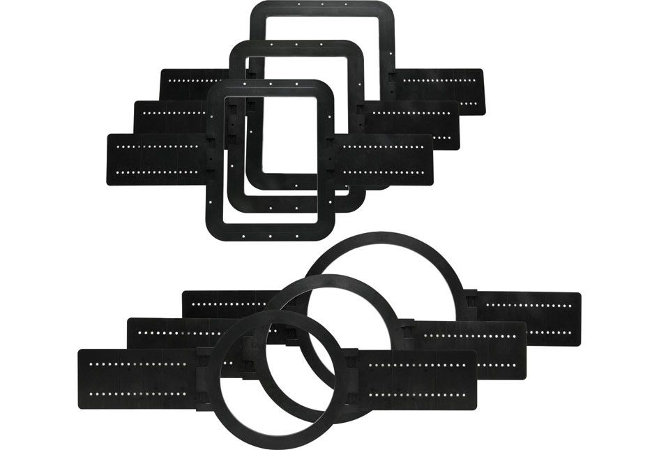 Plastic models are available to fit all sizes of Excite®, Aspire®, and Essence® in-ceiling and in-wall speakers (excluding the Aspire IWS82 in-wall subwoofer). Each model allows drywall to be installed over the template and acts as a guide for cutting the hole in place.